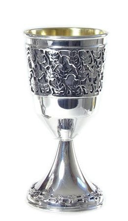 Leaf Pattern Kiddush Cup - by S. Nadav ( 4.5" H x 2.25" D )